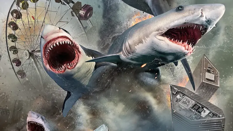 Sharknado เล่าเรื่องราวของพายุทอร์นาโดขนาดใหญ่ที่ก่อตัวขึ้นเหนือมหาสมุทร และดูดเอาฉลามจำนวนมากขึ้นไปในอากาศ